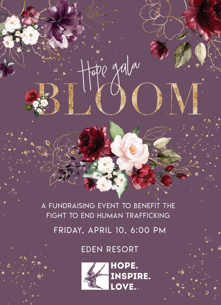 The theme for our annual gala is “Bloom,” representing that every survivor can bloom as we journey with them through their season of restoration and healing.
